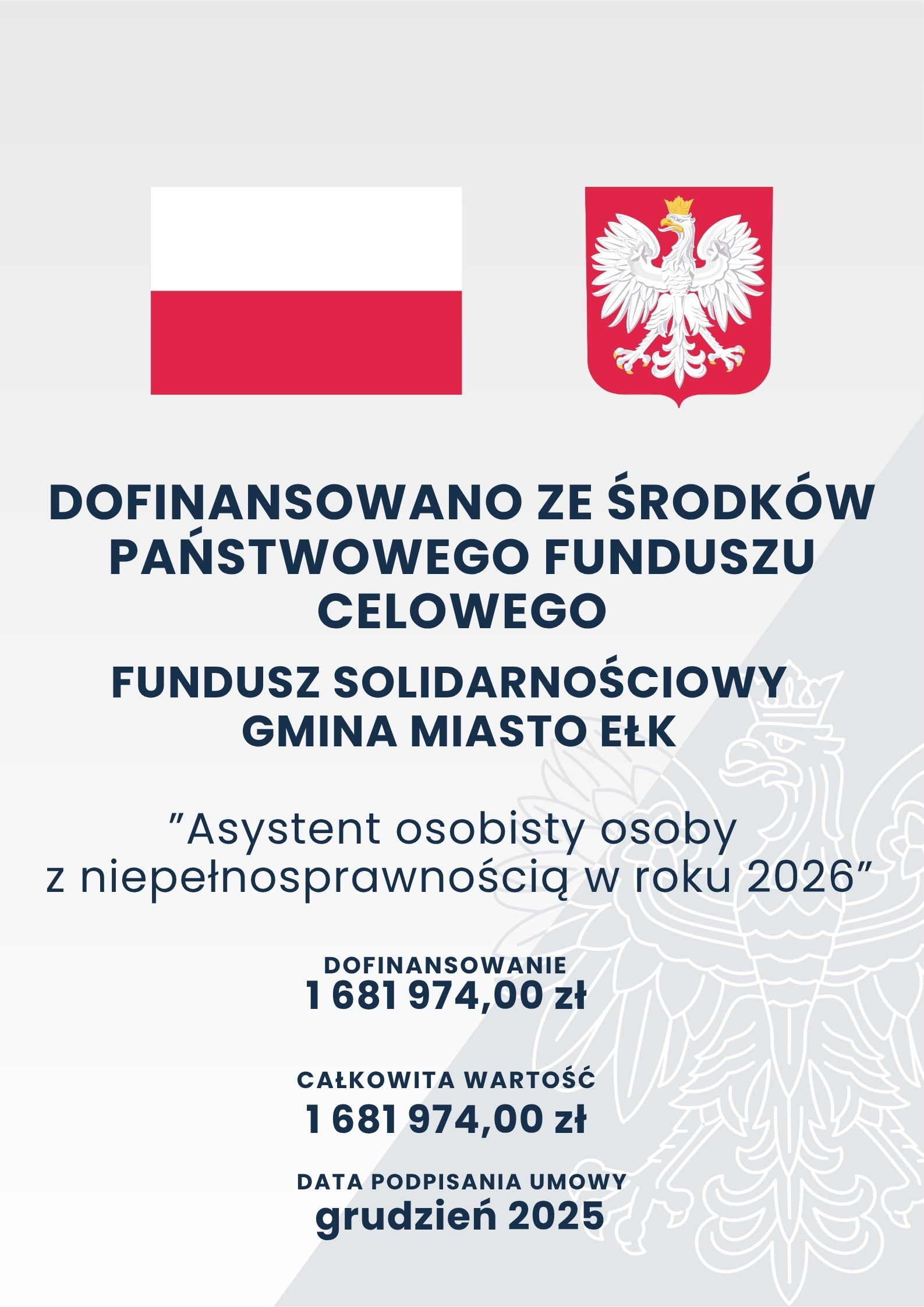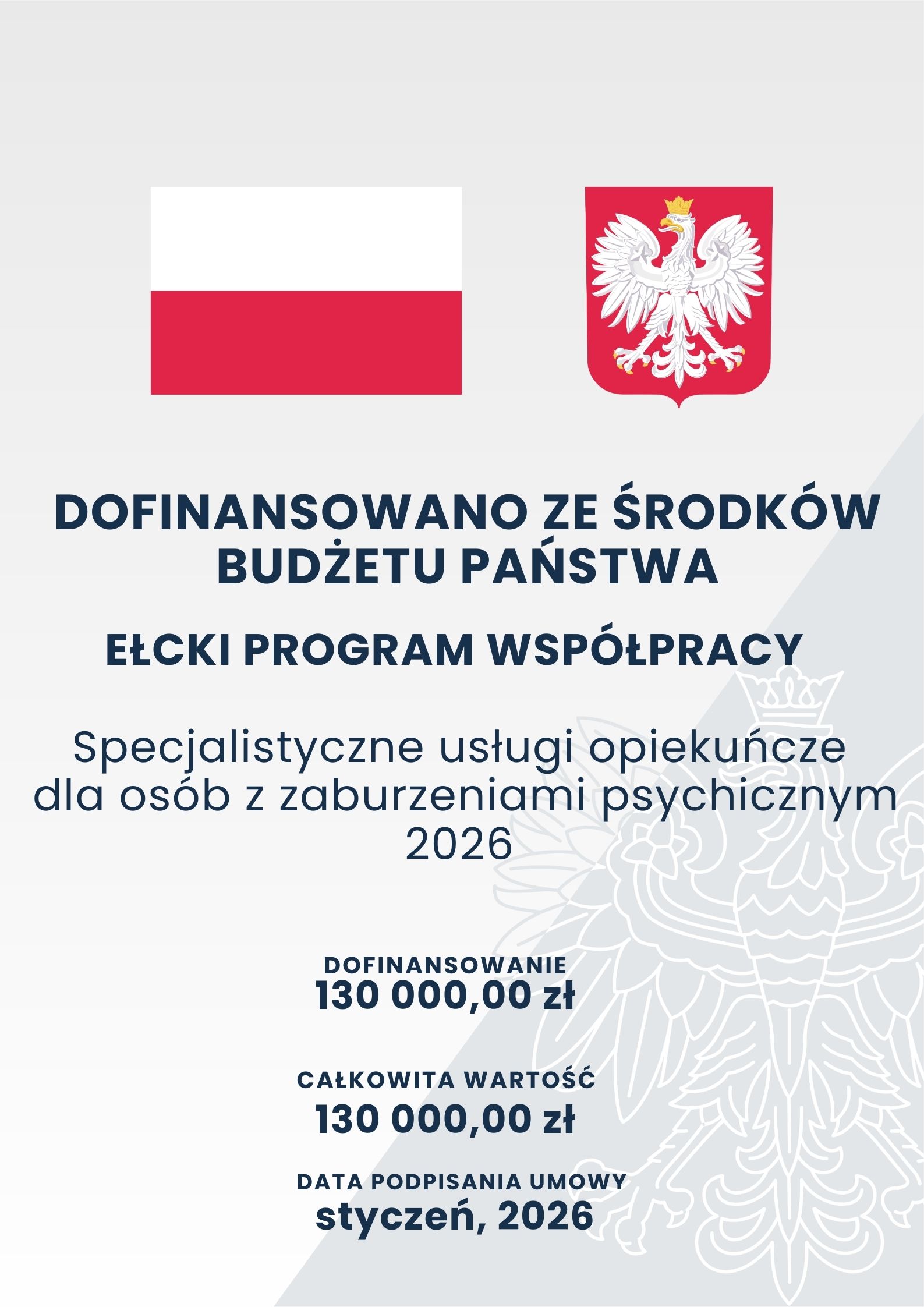 „Specjalistyczne usługi opiekuńcze dla osób z zaburzeniami psychicznymi 2026″ Gmina Miasto Ełk, kwota dofinansowania – 130 000,00 zł. Projekt realizowany jest...