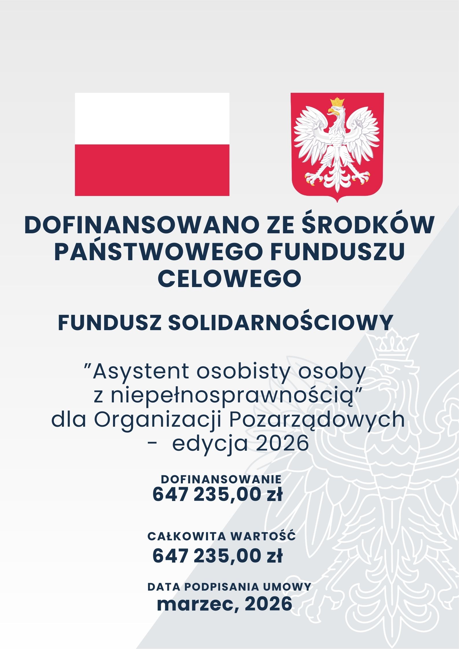 „Asystent Osobisty Osoby z Niepełnosprawnością” dla Organizacji Pozarządowych – edycja 2026. Projekt jest realizowany od 1 marca do 31 grudnia 2026...